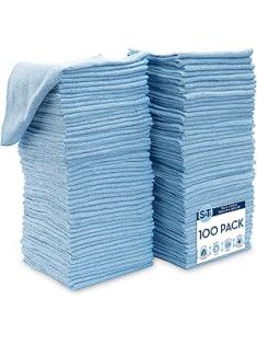 S&T INC. 100 Pack Microfiber Cleaning Cloth, Bulk Microfiber Towel for Home, Reusable Microfiber Towels for Cars, Light Blue, 11.5 in. x 11.5 in., 100 Count