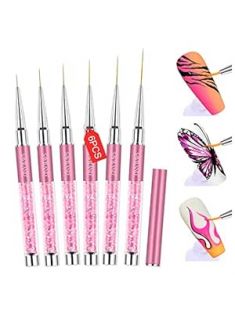 SAVILAND 6pcs Nail Art Liner Brushes Set: Nail Brush Gel Polish Painting Nail Art Design Brushes Pen with Crushed Diamond Rhinestone Handle for Pulling Lines,Sizes 7/9/11/13/17/23 mm
