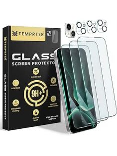 TEMPRTEK+ [3+3 Pack for iPhone 14 Plus Screen/Camera Protector 6.7" Inch Tempered Glass [Case Friendly] 9H+ Anti Scratch/Fingerprint [Full Coverage]