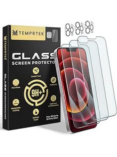 TEMPRTEK- [3+3 Pack for iPhone 13 Pro Max Screen Protector w/Camera Lens Protector, 9H+ Anti Scratch/Fingerprint/Silky Touch Tempered Glass [Case Friendly]-[Full Coverage selfie cut-out] Alignment Tool