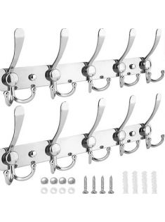 TICONN Wall Mounted Coat Rack, Five Heavy Duty Tri Hooks All Metal Construction for Jacket Coat Hat in Mudroom Entryway (Chrome, 2-Pack)