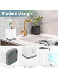 Boperzi Toothbrush Holders for Bathrooms, Detachable Electric Toothbrush Holder, Kids Toothbrush Holder Drainage, 3 slot Toothbrush and Toothpaste Holder Storage Caddy, Toothbrush Organizer White/Grey