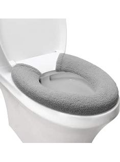 Toilet Seat Cover,Bathroom Soft Thicker Warmer with Snaps Fixed Stretchable Washable Fiber Cloth Toilet Seat Covers Pads Easy Installation& Cleaning (grey)