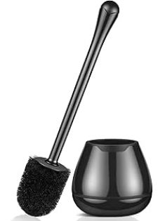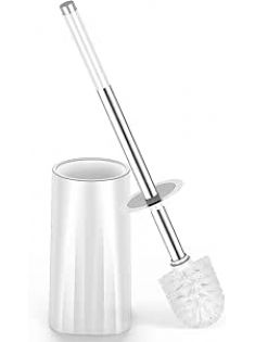 Toilet Brush and Holder, Toilet Bowl Brush and Holder with Long Handle, Plastic Holder Easy to Hide, Drip-Proof, Easy to Assemble, Deep Cleaning