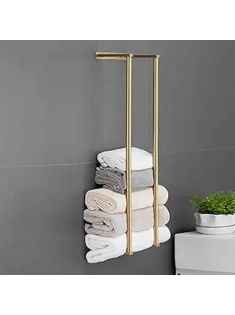 Towel Racks for Bathroom, NEWRAIN Rolled Towel Storage Wall Mounted Bath Towel Holder for Folded Large Towel Washcloths, Bathroom Organizing Brushed Gold