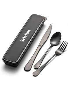 Travel Cutlery Set with Case Portable Silverware Utensils Set,4-pieces Stainless Steel Reusable Flatware Set Cutlery Set for Camping Picnic Hiking Office, Dishwasher Safe (6.7inch, Matte Black)