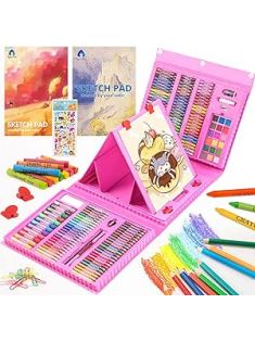 VigorFun Art Supplies, 240-Piece Drawing Art Kit, Gifts for Girls Boys Teens, Art Set Crafts Case with Double Sided Trifold Easel, Includes Sketch Pads, Oil Pastels, Crayons, Colored Pencils (Pink)