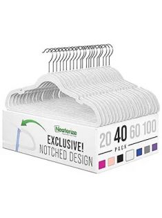 Velvet Hangers 40 Pack White – Heavy Duty Clothes Hangers Space Saving - Non Slip Felt Hangers for Closet - Perchas Ganchos para Colgar Ropa Hangars