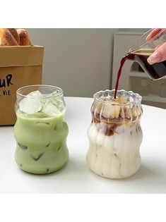 2 Pcs Ribbed Glass Cups 18 Oz Vintage Drinking Glassware Ripple Cocktail Glasses for Iced Coffee Juice Beverage Milk