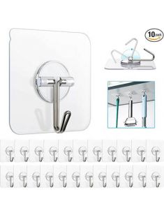 Adhesive Hooks, Removable Wall Hooks Heavy Duty 13 LB Ceiling Hooks Transparent Seamless Hooks Waterproof and Oil Proof for Cabinet Kitchen Bathroom Ceiling Office Window 10 Pack