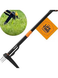 Fiskars 4-Claw Stand Up Weeder - Gardening Hand Weeding Tool with 39" Long Ergonomic Handle - Black