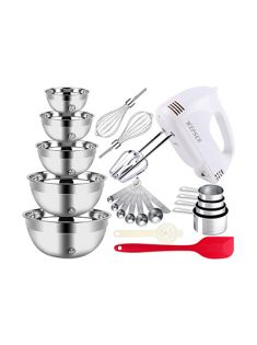 5-Speed Electric Hand Mixer, 5 Large Mixing Bowls Set, Handheld Mixers with Whisks Beater, Stainless Steel Metal Nesting Mixing Bowl Measuring Cups Spoons Kitchen Cake Blender for Prep Baking Supplies