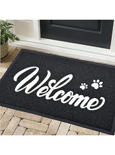 Welcome Mat Outdoor, 30x17.5 Waterproof All-Season Front Door Mat Outside Entrance, All-Weather Quick Drying, Low Profile Doormat Indoor, Patio Porch Entryway Mat, Black-White