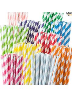 Weemium Paper Straws Disposable 200 Pack - Striped Straws in 10 Colors - Biodegradable, Durable and Eco friendly - Non-soggy Paper Straws for Drinking and Crafts