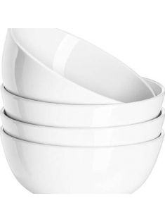 DOWAN 22 OZ Ceramic Soup Bowls & Cereal Bowls - 6" White Bowls Set of 4 for Soup, Cereal, Oatmeal, Fruit, Rice - Dishwasher & Microwave Safe