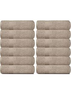 White Classic Resort Collection Soft Washcloth Face & Body Towel Set | 12x12 Luxury Hotel Plush & Absorbent Cotton Washclothes [12 Pack, Taupe]
