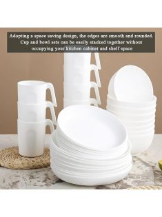 White Plastic Dinnerware Sets 24pcs Service for 6, Reusable Plates and Bowls Sets, Dish Set Include Dinner Plates, Dessert Plate, Cereal Bowls, Cups for Home, Garden, Picnic, Camping