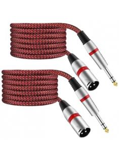 XLR Male to 1/4" TRS Cable Balanced - 6.6FT Quarter Inch Stereo to XLR Microphone Cord Adapter, Nylon Braided, OFC Shielded, Red Color, for Mixer, Monitor Speaker, Audio Interface, 2Pack