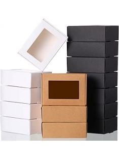 Zonon 30 Pcs Soap Boxes for Homemade Soap Boxes Packaging Small Gift Box Mini Kraft Treat Boxes with Window Present Packaging Box for Bakery Candy Soap Making(Black Brown White, 3.5 x 2.4 x 1.2 Inch)