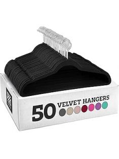 Zober Velvet Hangers 50 Pack - Heavy Duty Black Hangers for Coats, Pants & Dress Clothes - Non Slip Clothes Hanger Set - Space Saving Felt Hangers for Clothing