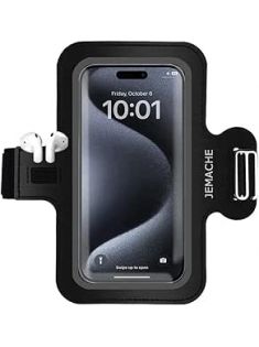 JEMACHE Minimalism Design Running Workouts Phone Armband for iPhone 16 15 14 13 12 11 Pro Max, Samsung Galaxy S24 S23 S22 Ultra/Plus with Earphone Holder (Black, S)