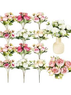 Jexine 12 Bundles Silk Artificial Peonies Flowers Faux Peony Bouquet Fake Peonies Artificial Flowers Bouquets for Vase Floral Arrangements Wedding Home Table Decoration (Colorful)
