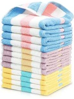 Jacquotha Cotton 12 Pack Striped Washcloths, 13 x 13 Inches, 3 Colors - Face and Body Cleansing Towels