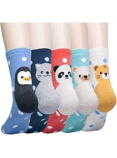 KONY 5 Pack Women's Cute Animal Socks Cotton Cat Dog Duck Patterned Novelty Fun Crew Socks Gift Size 6-9