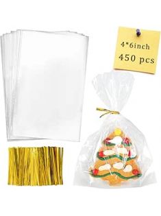Labeol Cellophane Bags 450Pcs 4X6 Treat Bags with Ties Goodie Bags Clear Plastic Bags for Packaging Party Favor Gift Cookie Candy Bakery Christmas Valentines Day Easter Cellophane Wrap