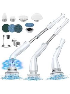 LABIGO Electric Spin Scrubber LA1 Pro, Cordless Spin Scrubber with 7 Replaceable Brush Heads and Adjustable Extension Handle, Power Cleaning Brush for Bathroom Floor Tile (White)