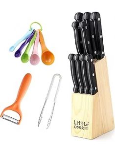 Knife Set, Little Cook 13 PCS Kitchen knife set, German Stainless Steel Chef Knife Set, Knife Sets for Kitchen with Block