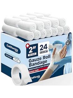 California Basics, Gauze Bandage Roll with Tape - Rolled Gauze Wrap - White Gauze Rolls - Breathable Gauze Wrap Used for First Aid Wound Care & Medical Supplies