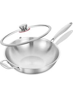 LOLYKITCH 12 Inch Tri-Ply Stainless Steel Wok Pan with Lid, Stir-Frying Pan,Induction Cooking Pan,Dishwasher and Oven Safe,Heavy Duty and Detachable Handle.