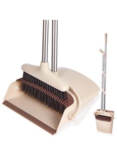 Broom and Dustpan Set with Long Handle, Light Weight Stainless Steel Poles Stand Upright Dustpans with Broom Combo for Home Kitchen Office Pet Dog Hair, Brown & Beige Color, 1-Pack
