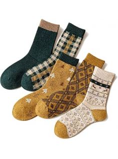 Meloday Thick Wool Vintage Classic Hiking Crew Socks for Women Soft and Comfortable - 5 Pairs Per Pack