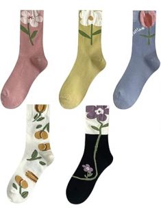 MeganJDesigns Cute Cotton Socks for Women and Girls, 5 Pairs Socks for Sports and Daily Wear