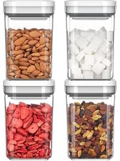 MR.SIGA 4 Pack Airtight Food Storage Container Set, BPA Free Kitchen Pantry Organization Canisters with One-handed Leak Proof Lids, 1L / 33.8oz, Medium, White