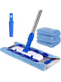 MR.SIGA Professional Microfiber Mop for Hardwood, Laminate, Tile Floor Cleaning, Stainless Steel Telescopic Handle - 3 Reusable Flat Mop Refills and 1 Dirt Removal Scrubber included
