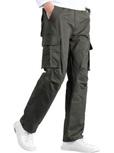 Mylldey Mens Cargo Pants Classic Fit Pants Cotton Mens Work Pants Casual Elastic Waist Men Pants 6 Pccket