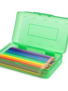 Tamaki 1 Pack Plastic Pencil Box Large Capacity Pencil Boxes Clear Boxes with Snap-tight Lid Stackable Design and Stylish Office Supplies Storage Organizer Box, Green