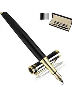 lucilynx Fountain Pen, Medium Nib, Includes 8 Ink Cartridges [Black & Blue] & Ink Converter, Calligraphy Pen, Consistent Writing, Nice Pens - Black