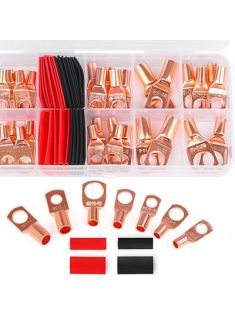 Copper Wire Lugs,Terminal Connectors,Used on AWG12 10 8 6 4 2 Cable,Heat Shrink Set,Bare Copper Eyelets,Ring Terminals Connectors,30Pcs Battery Cable Lugs Ends and 30Pcs Heat Shrink Tubing (60PCS)