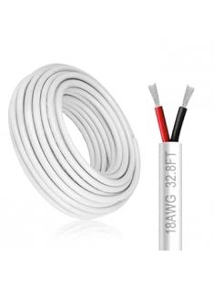 18 Gauge 2 Conductor Electrical Wire, 32.8FT White Stranded Low Voltage 18/2 Cable PVC Case, 18 AWG Tinned Copper 2 Wire Cable Extension Power Cable for Strips LED Lamp Lighting Automotive
