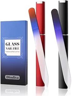 2-Pack Glass Nail File 2mm Thickness Crystal Files with Case Fingernail File for Nature Nails Double-Sided Etched Czech Glass Files for Travel Fine Grit Nail Filer Gifts Package Stocking Stuffers