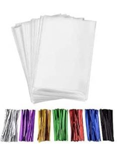 200 Pcs 10 in x 6 in(1.4mil.) Clear Flat Cello Cellophane Treat Bags Good for Bakery, Cookies, Candies,Dessert with five random color Twist Ties!