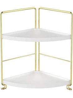 2-Tier Kitchen Spice Rack-Corner Bathroom Shelf- Triangle Standing Storage Rack for Bathroom, Living Room, Bedroom, Kitchen (Golden)