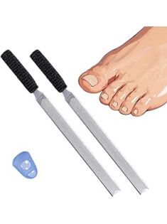 2-Piece Stainless Steel Toenail File for Thick Nails | 4-Sided Design with Non-Slip Grip & Thumb Protector | 7" Durable Metal Nail File for for All, Elderly & Dogs