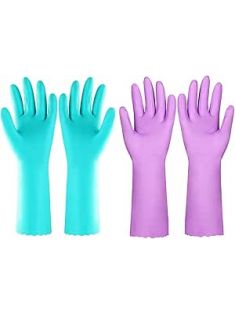Elgood Reusable Dishwashing Cleaning Gloves with Latex free, Cotton lining,Kitchen Gloves 2 Pairs,Purple+blue Medium