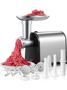 Electric Meat Grinder, Sausage Stuffer with 3 Sausage Tubes, 2 Blades, 3 Plates, 3200W Max, Meat Grinder Heavy Duty for Home Kitchen Use, Stainless Steel (Black)