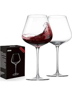 JBHO Hand Blown Italian Style Crystal Burgundy Wine Glasses - Lead-Free Premium Crystal Clear Glass - Set of 2-21 Ounce - Gift-Box for any Occasion